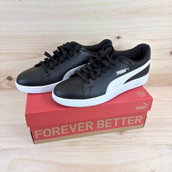 Zapatillas de Deporte Unisex PUMA Smash V2 L, en color Puma Black-Puma White, talla 44 EU (sin defectos). Diseño clásico con parte superior de cuero sintético y suela de goma para mayor durabilidad y confort.