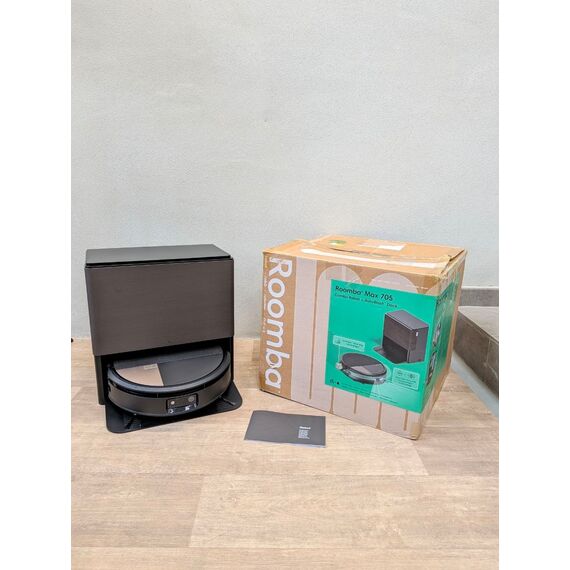 iRobot Roomba MAX 705 Combo con Base AutoWash multifunción y Agua Caliente (como nuevo, pequeño detalle: leves marcas de uso). Incorpora rodillo de fregado PowerSpin Extensible, cubiertas protectoras y cepillos dobles para un acabado impecable.