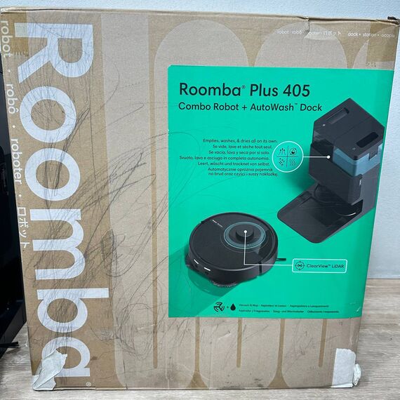 iRobot Roomba Plus 405 Combo con Base AutoWash, en estado como nuevo y sin defectos. Este robot aspirador y fregona cuenta con tecnología Clearview LiDAR para una navegación precisa, así como mopas DualClean elevables para un lavado y secado eficiente. Su capacidad de autovaciado se extiende hasta 75 días, facilitando el mantenimiento.