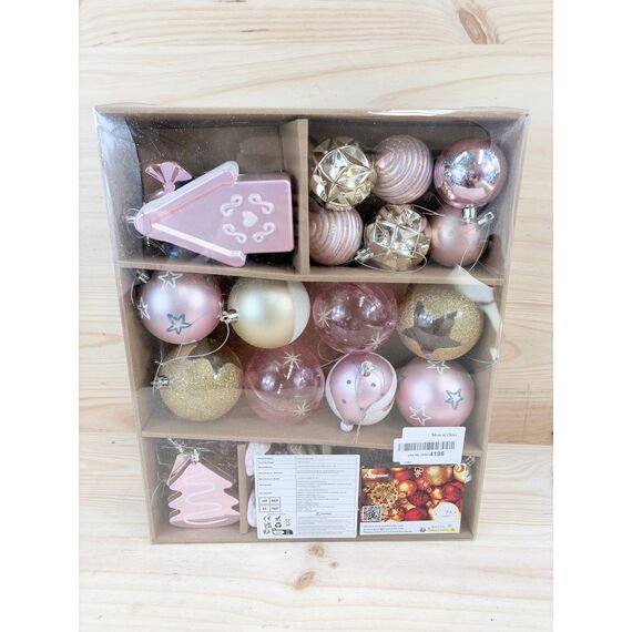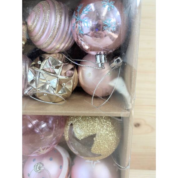 Set de Bolas de Navidad Alupssuc de 65 piezas (nuevo, nunca usado, pequeño detalle: caja deteriorada). Incluye bolas de 4 a 14 cm, fabricadas en plástico inastillable, ideales para decorar tu árbol de Navidad.