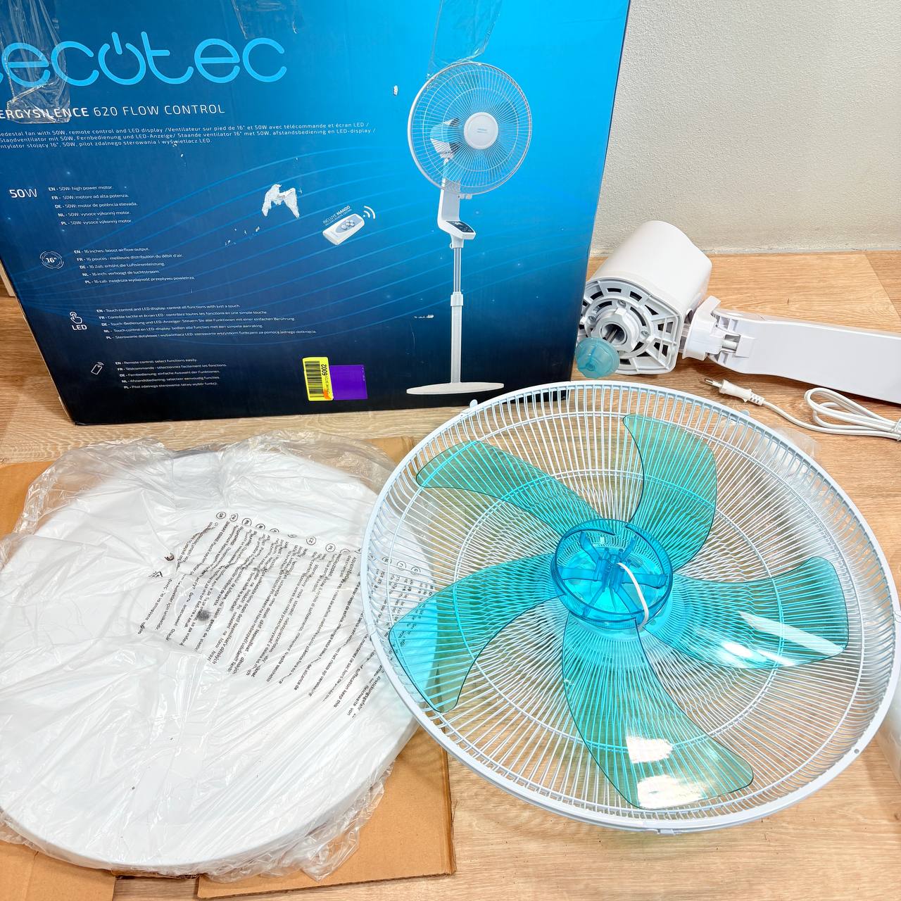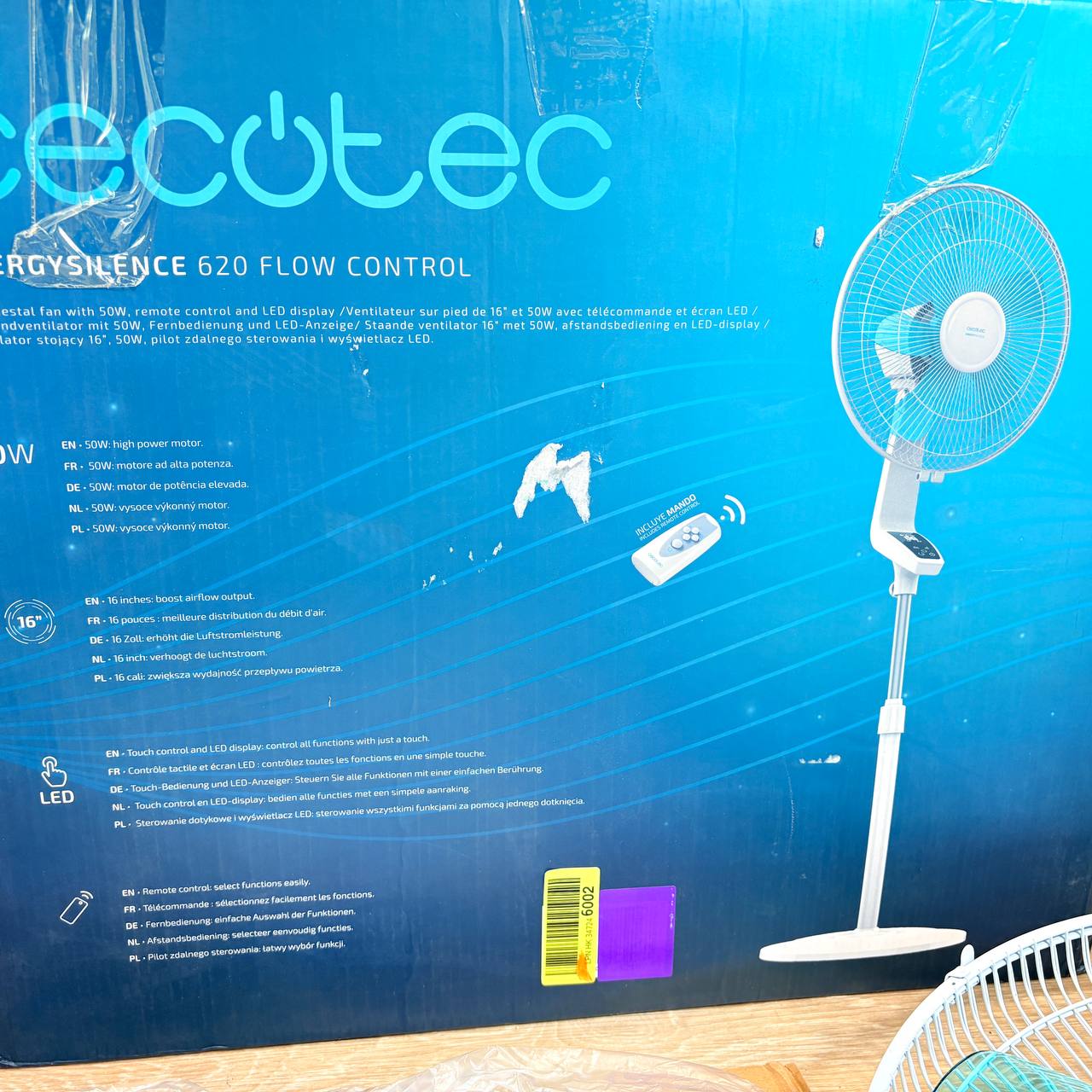 Ventilador de Pie Cecotec EnergySilence 620 Flow Control (como nuevo, sin defectos). Potente motor de 50W con un diámetro de 16", temporizador de hasta 12 horas, control táctil y pantalla LED. Ofrece 3 velocidades y oscilación automática para una perfecta distribución del aire.