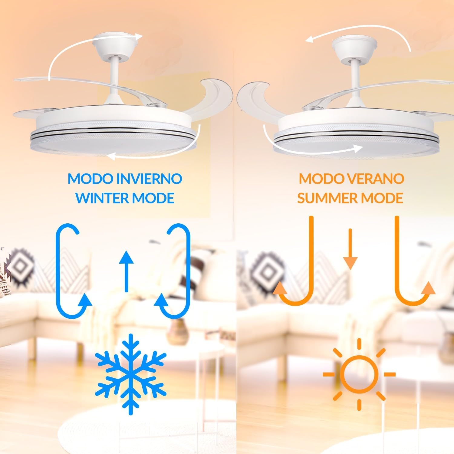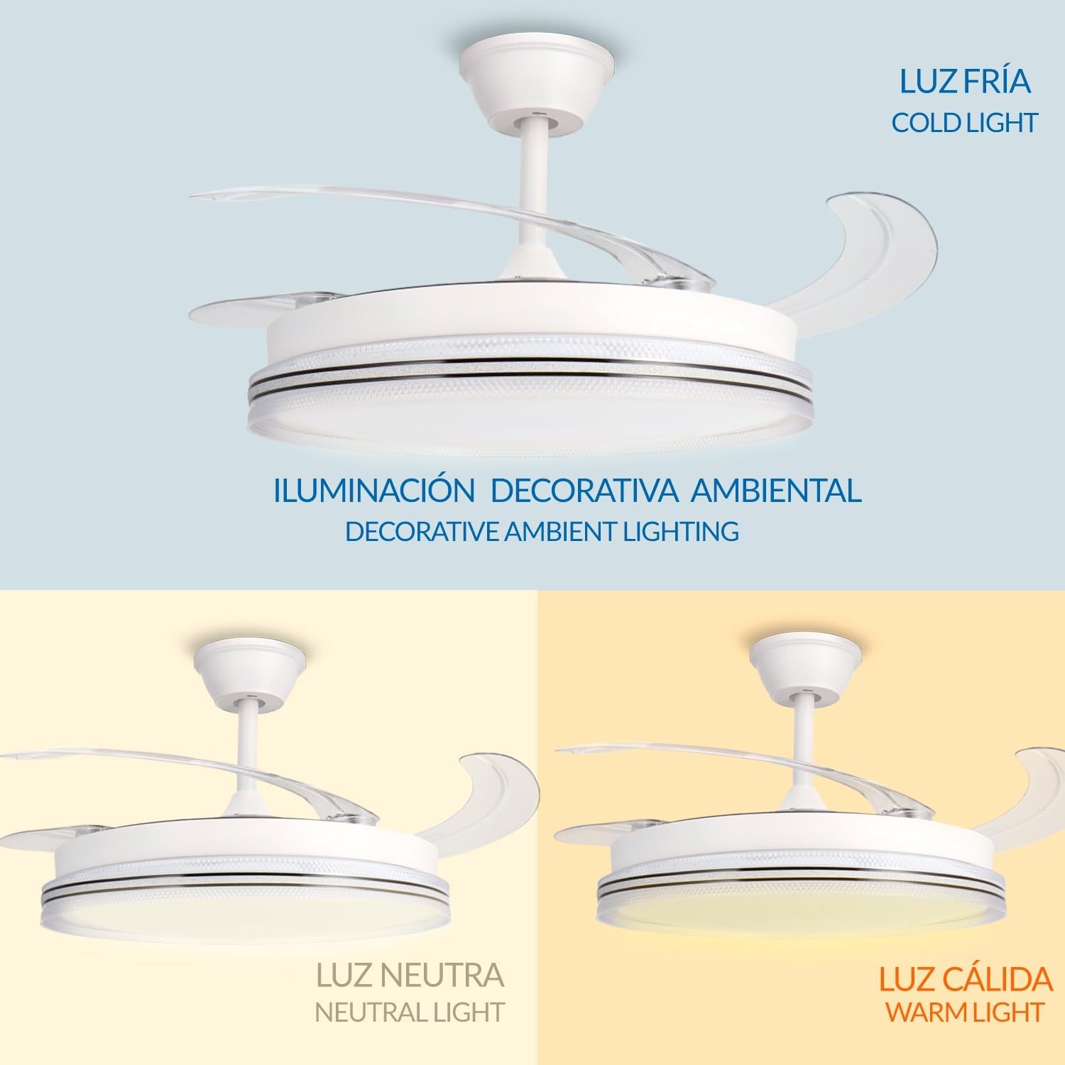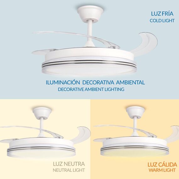 mimotec, ventilador, techo, led, white, decor, temperatura, color, oferta, nuevo.