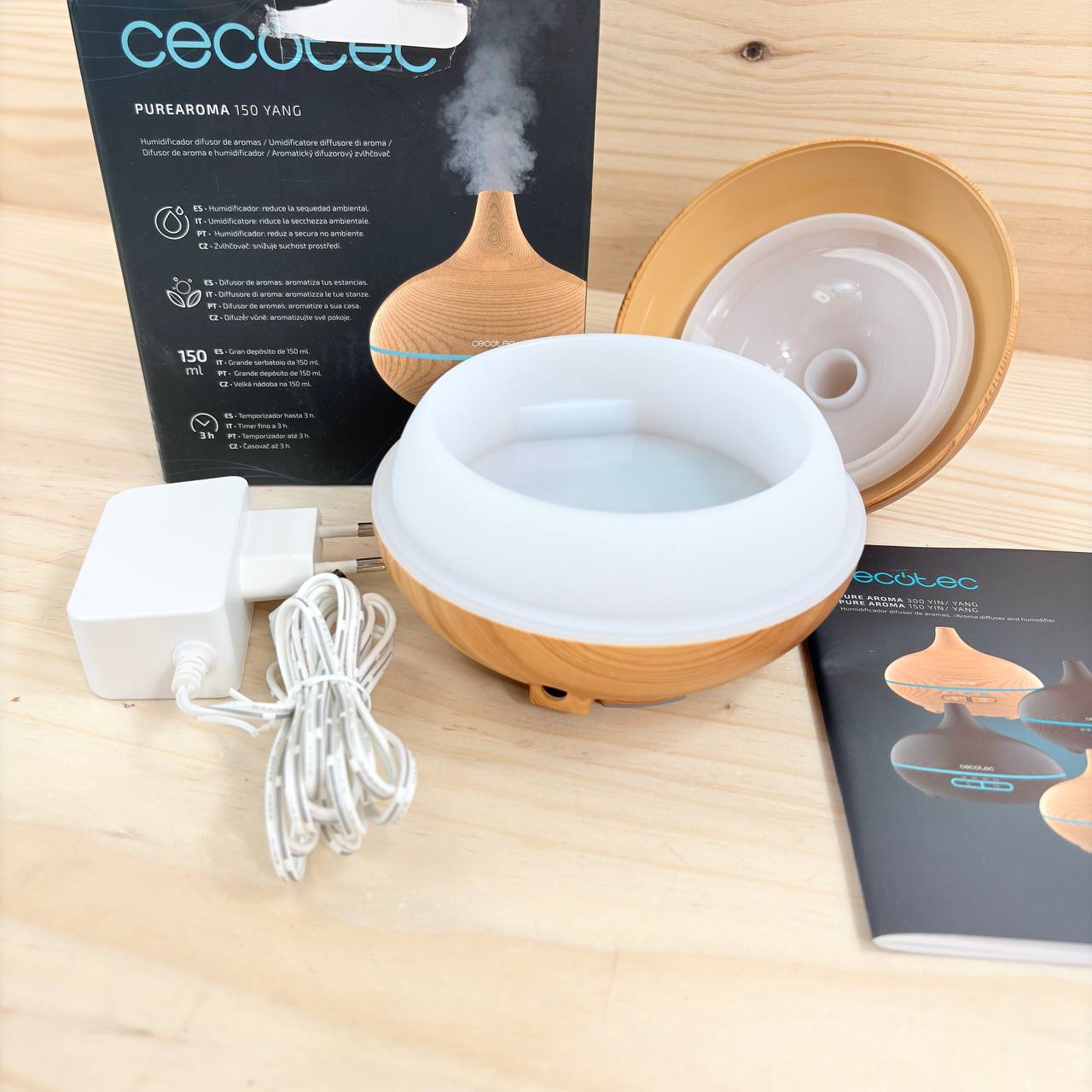 Humidificador Ultrasónico y Difusor de Aromas Cecotec Pure Aroma 150 Yang (como nuevo, sin defectos). Capacidad de 150 ml con temporizador de 3 horas y 7 colores LED.