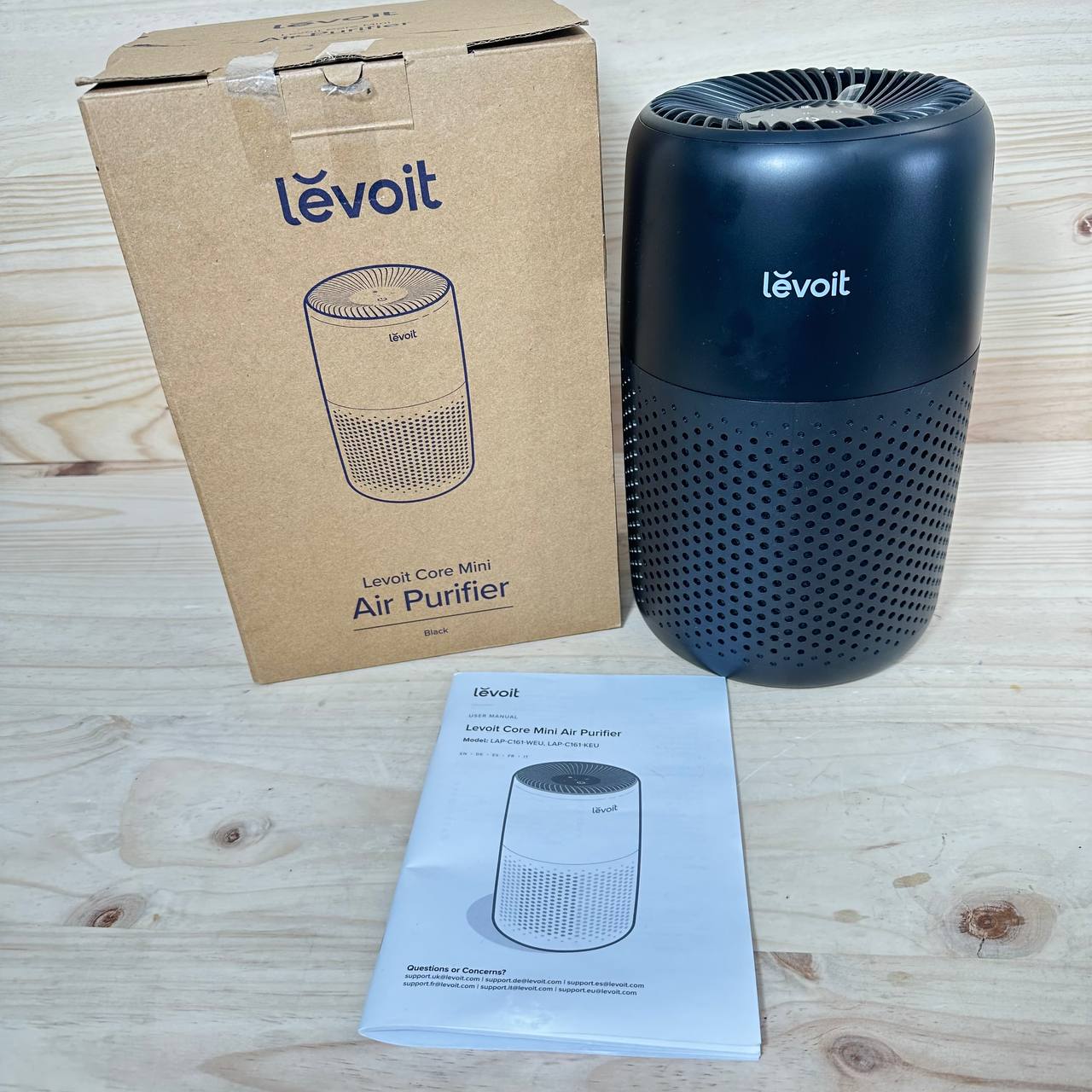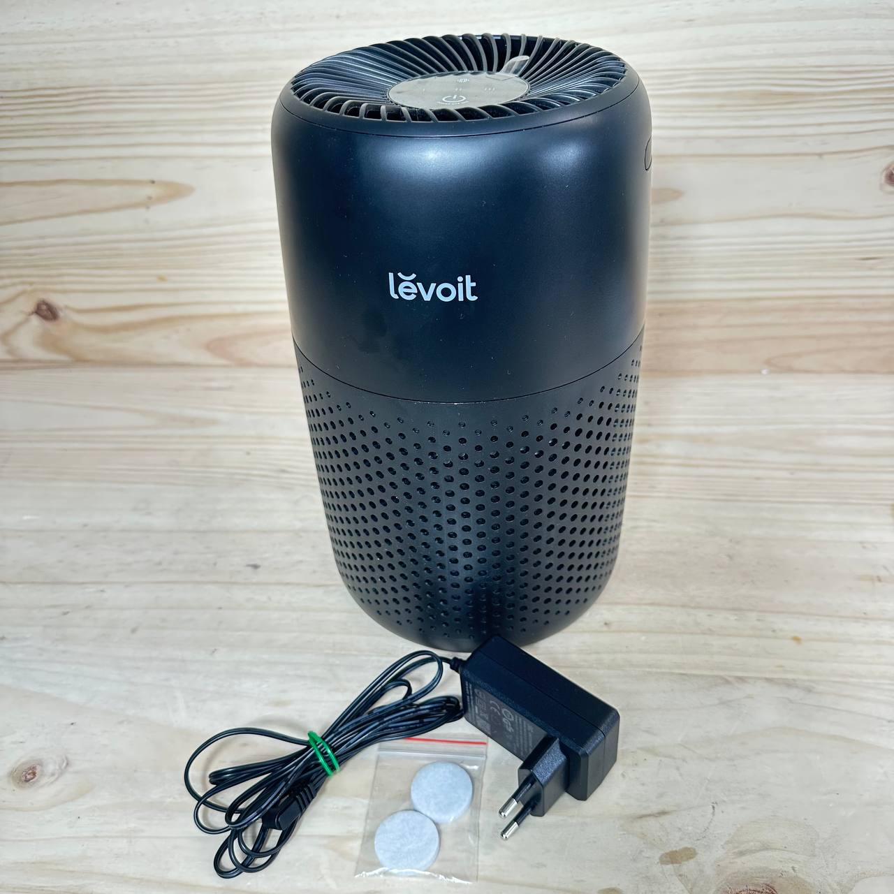 Purificador de Aire LEVOIT Core Mini (buen estado, sin defectos). Equipado con filtro HEPA, ideal para reducir alérgenos en el ambiente. Su diseño compacto y elegante en color negro lo convierte en un complemento perfecto para cualquier espacio.