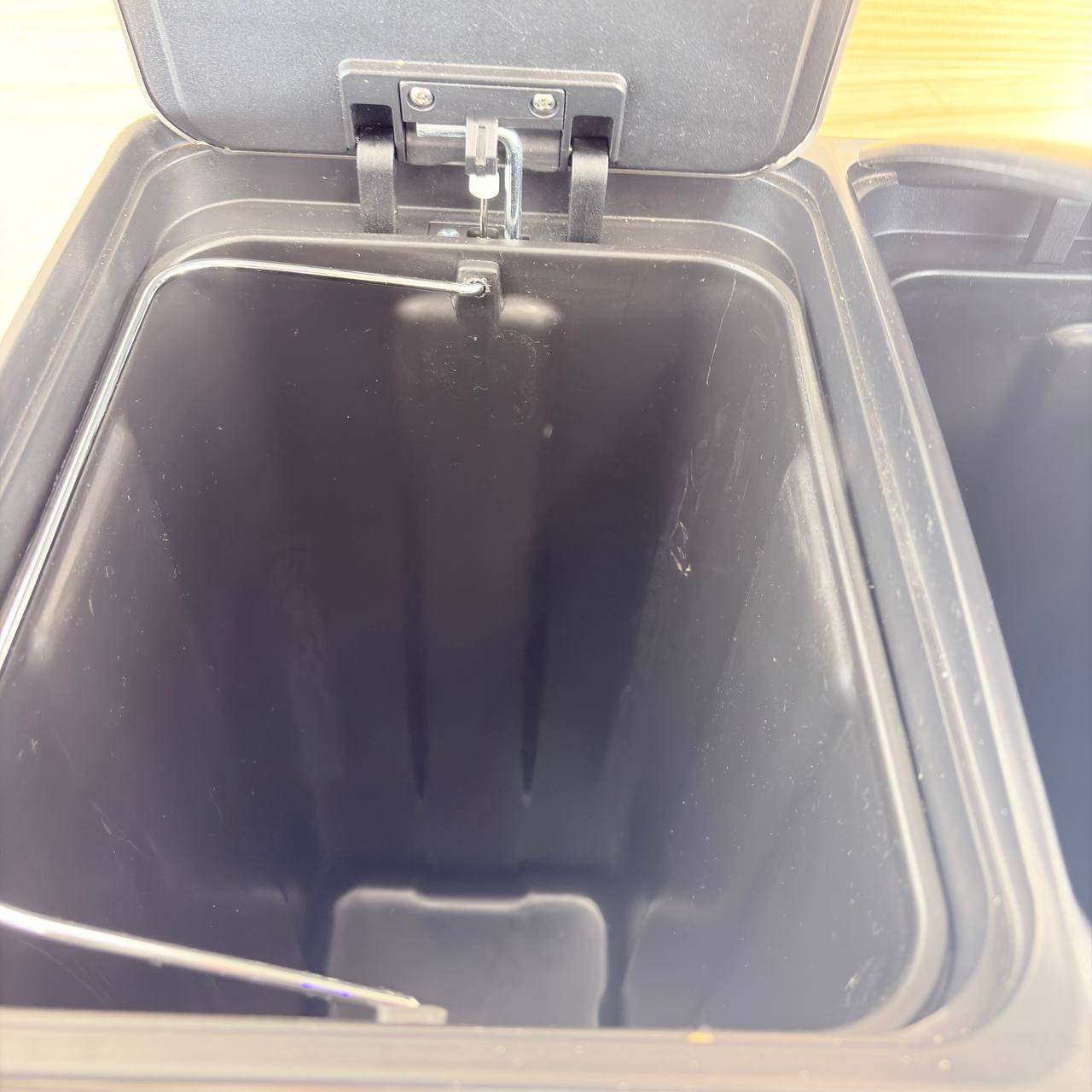 Su diseño moderno y funcional permite clasificar residuos de manera eficiente, facilitando la separación de reciclaje en el hogar.