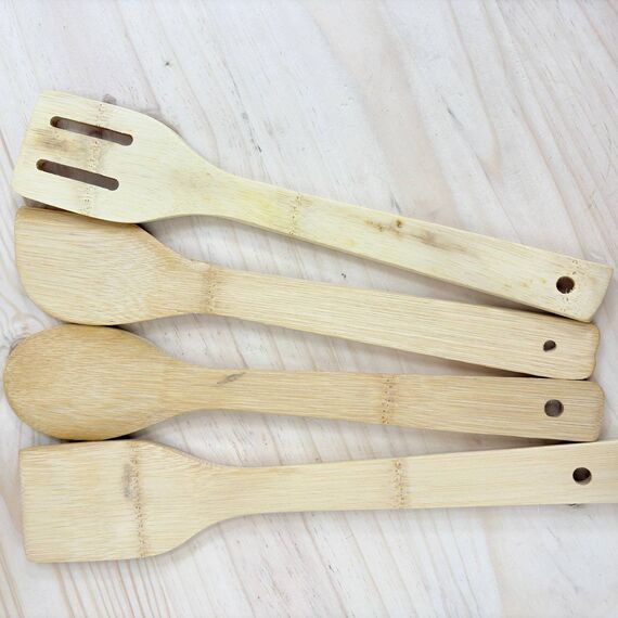juego, utensilios, cocina, bambú, set, piezas, soporte, cucharas, oferta, nuevo.