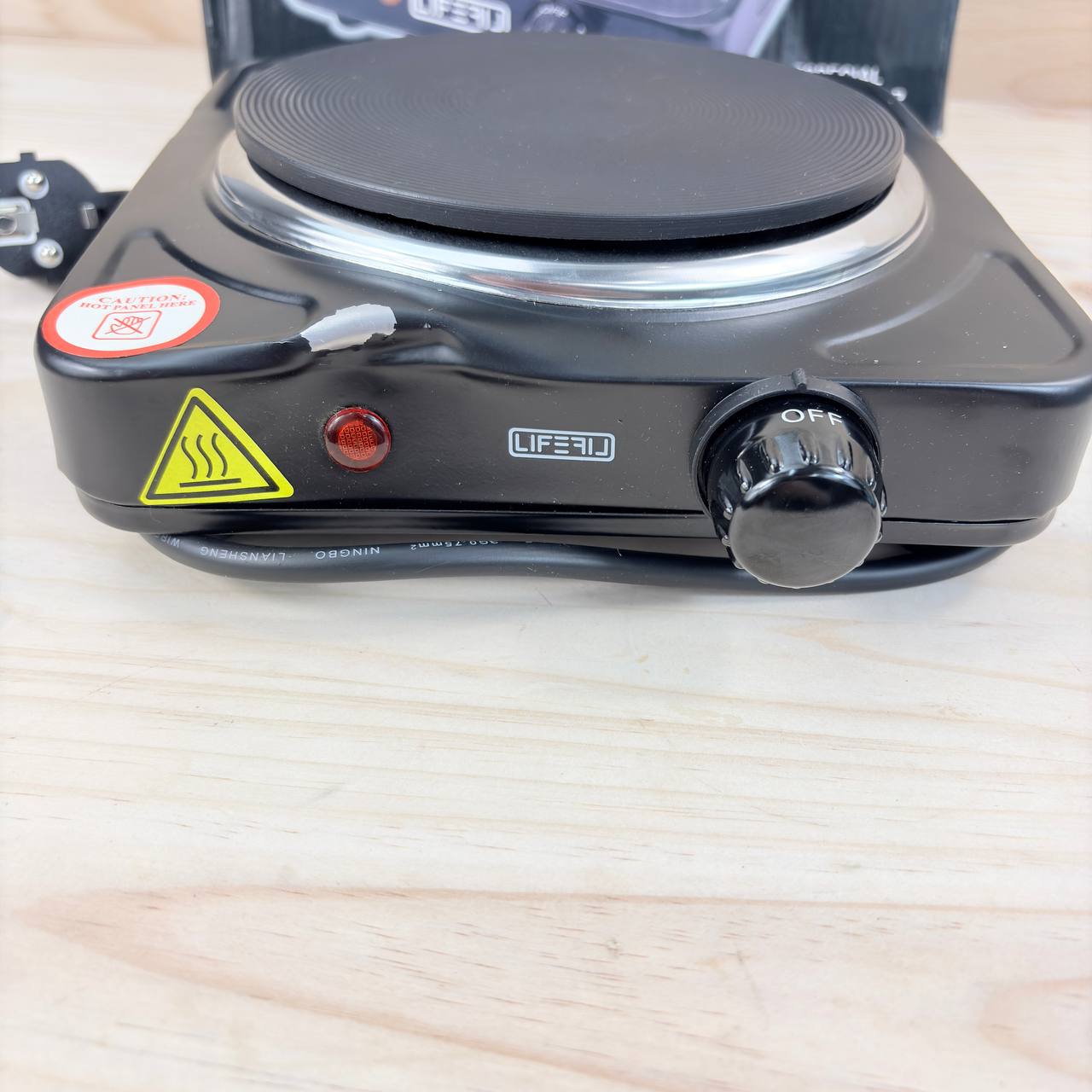 Hornillo eléctrico portátil LIFEFIL CookMate de 1000W (nuevo, pequeño detalle: abolladura en el cuerpo que no afecta funcionamiento). Placa de alta potencia apta para todas las sartenes, ideal para camping, terraza o caravanas. Color negro.