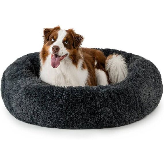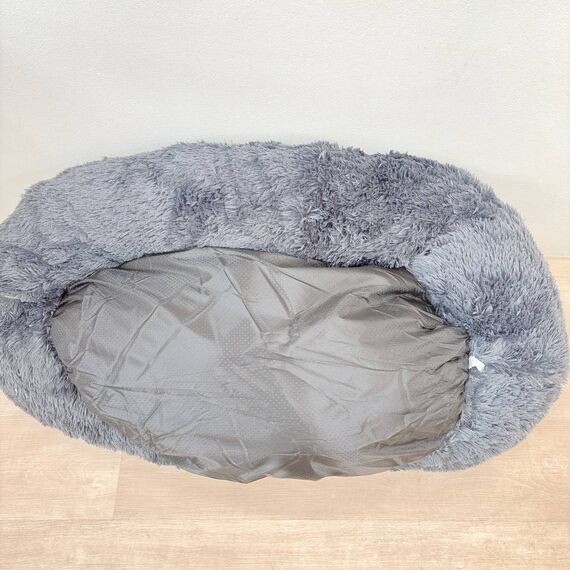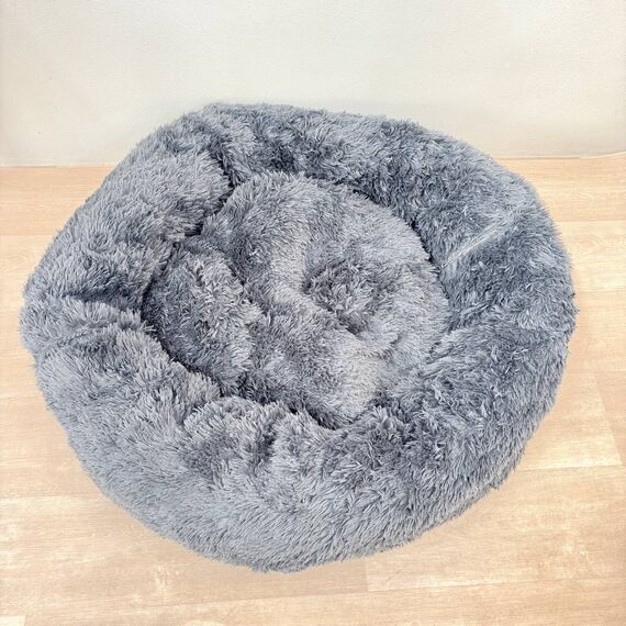 Cama Tipo Donut lionto para Perros y Gatos, modelo Ø 100 cm (como nuevo, pequeño detalle: sin caja original). Cojín suave de felpa esponjosa con relleno extra grueso en color gris oscuro.