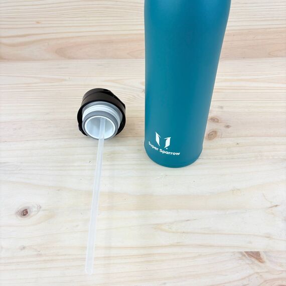 Super Sparrow Botella Agua Acero Inoxidable - Botella Térmica de 750ml (nuevo, pequeño detalle: sin caja original). Fabricada en acero inoxidable, libre de BPA, incluye dos tapas: una con pajita y otra con boquilla.