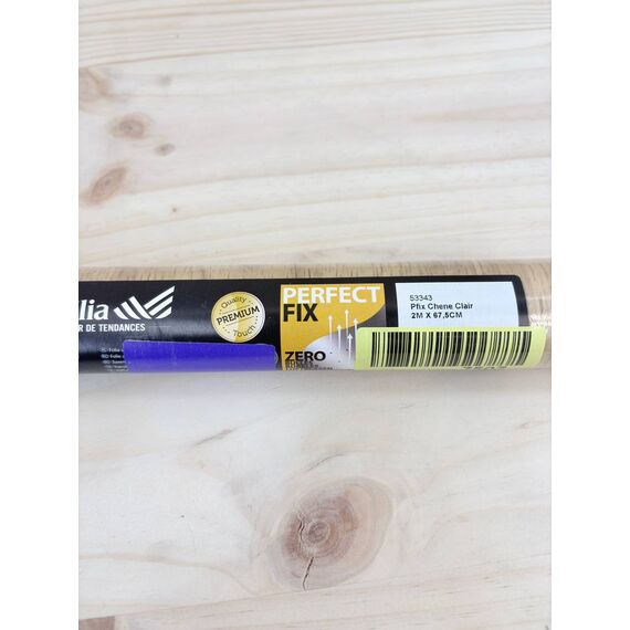 Venilia Lámina adhesiva Perfect Fix, Madera Roble claro, 67,5cm x 2m (nuevo, pequeño detalle: defecto de fabricación que no afecta su uso). Espesor de 150μ, ideal para decorar muebles y paredes con un acabado moderno.