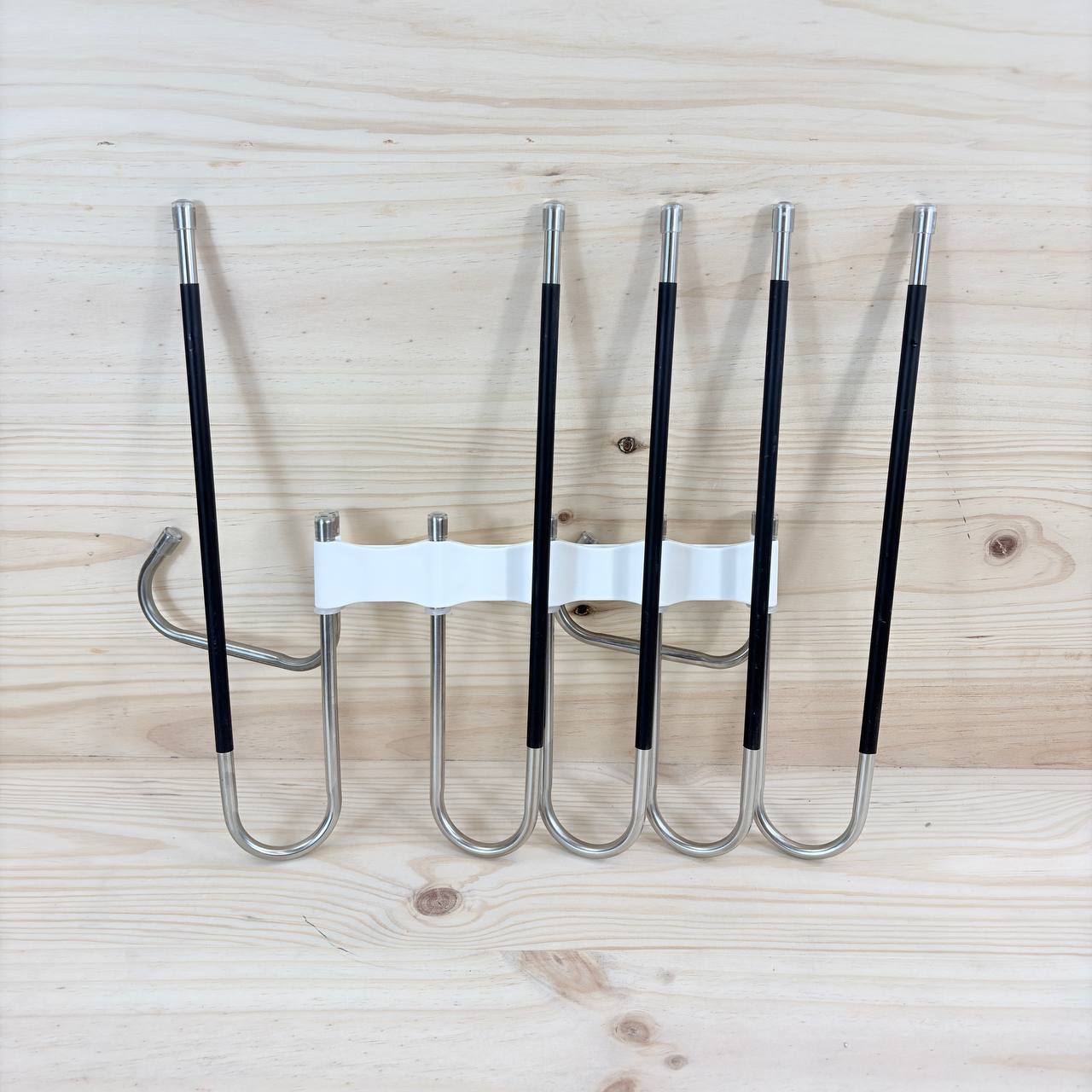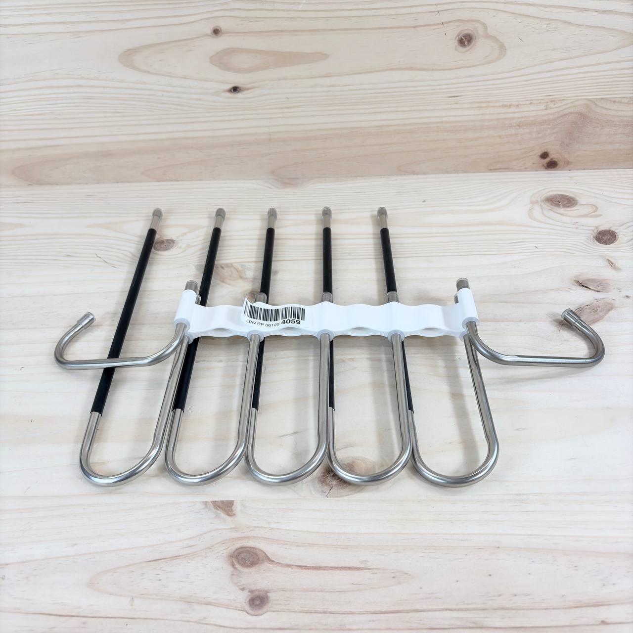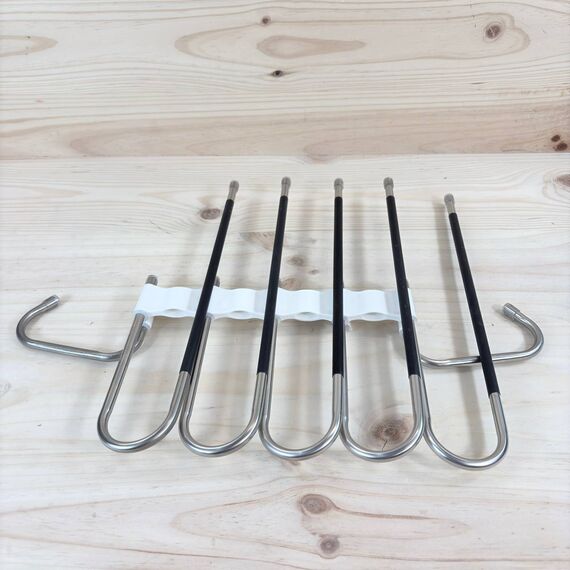 Perchas Pantalones DAMITA 5 en 1 (nuevo, pequeño detalle: sin embalaje original). Fabricadas en acero inoxidable, estas perchas son extensibles y antideslizantes, ideales para organizar pantalones, bufandas y vaqueros.