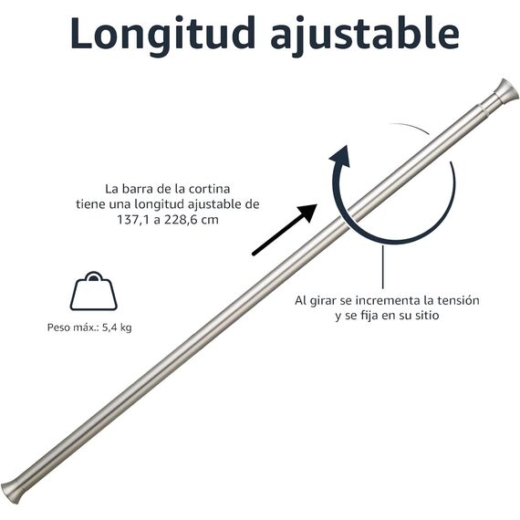 Este tringle es fácil de instalar y proporciona un soporte robusto para cortinas de ducha, asegurando un ajuste perfecto gracias a su diseño ajustable.