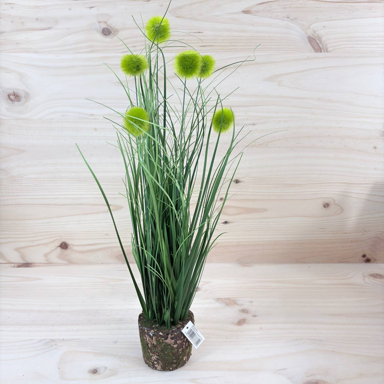 Hierba artificial con botones en maceta de tierra (como nuevo, con pequeños defectos de fabricación). Esta planta decorativa es ideal para añadir un toque verde a cualquier espacio sin necesidad de mantenimiento.