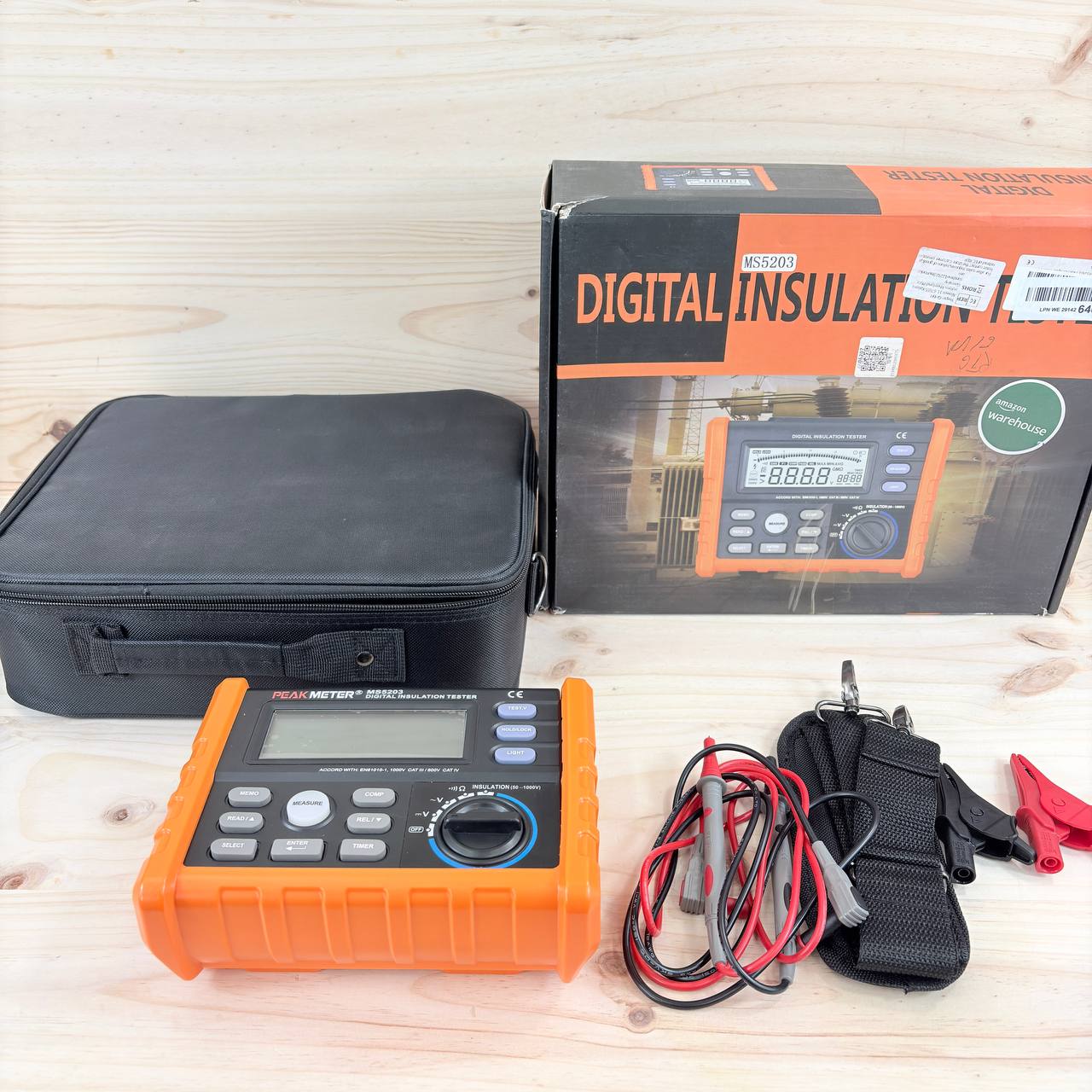 Medidor de Resistencia Digital PM5203 de 1000V (nuevo, sin defectos). Ideal para pruebas de aislamiento y mediciones de resistencia, cuenta con pantalla LCD retroiluminada para facilitar su uso en condiciones de poca luz.
