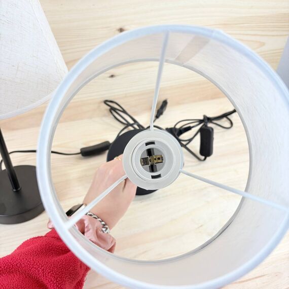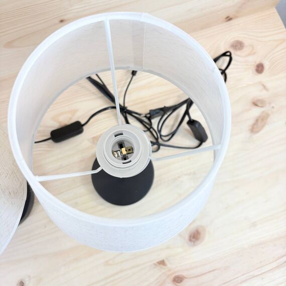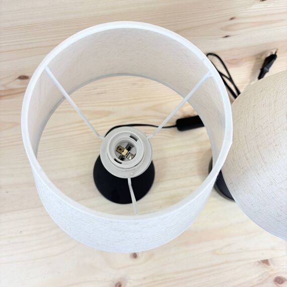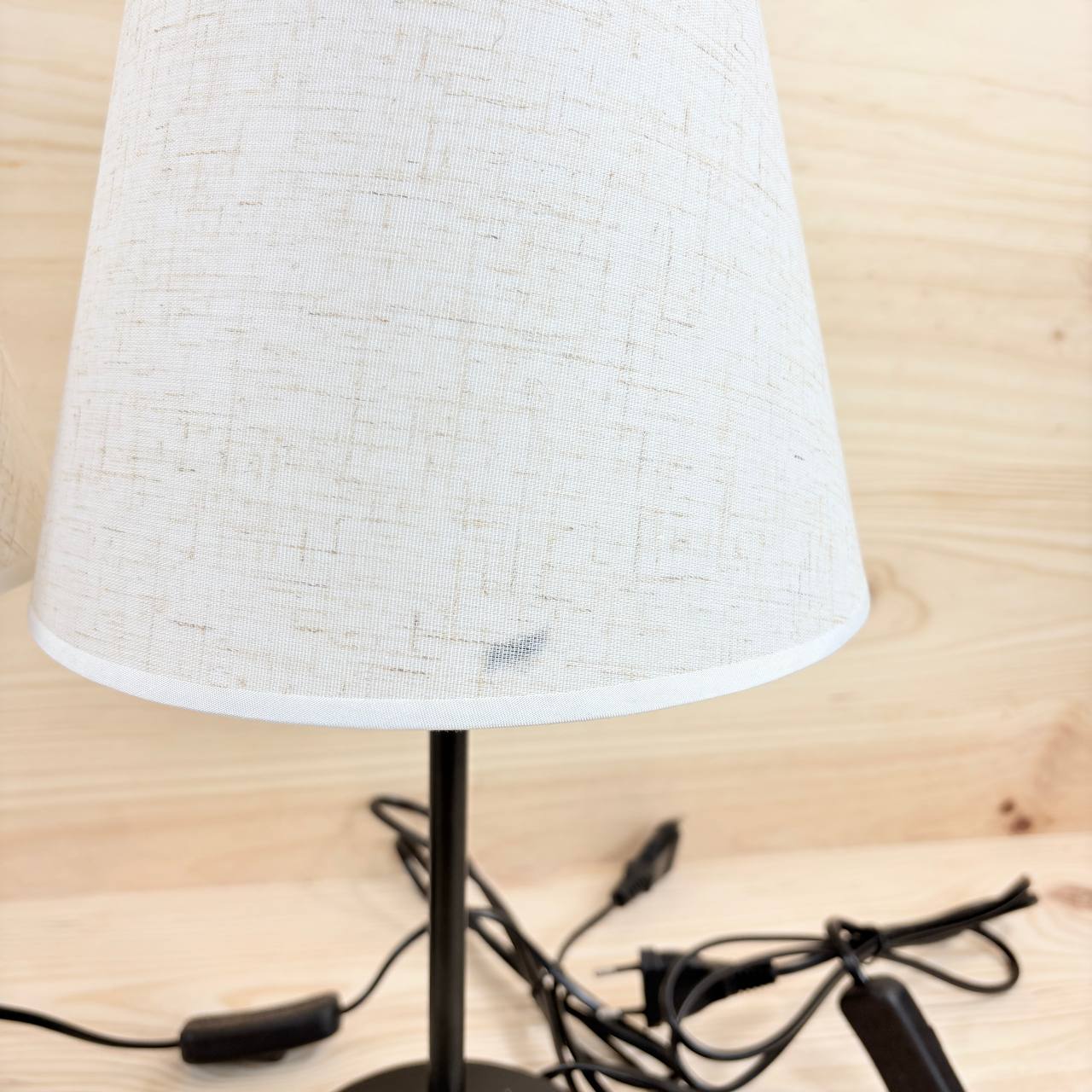 Lámpara de Mesa LIANTRAL, modelo moderna, en estado como nuevo (pequeño detalle: pequeña mancha que no afecta su uso). Con pantalla de tela de lino y base de metal, ideal para cualquier espacio.