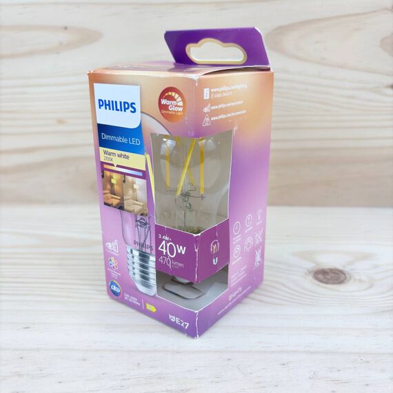 Philips LED Classic E27 WarmGlow 40W Dimmbare Klar