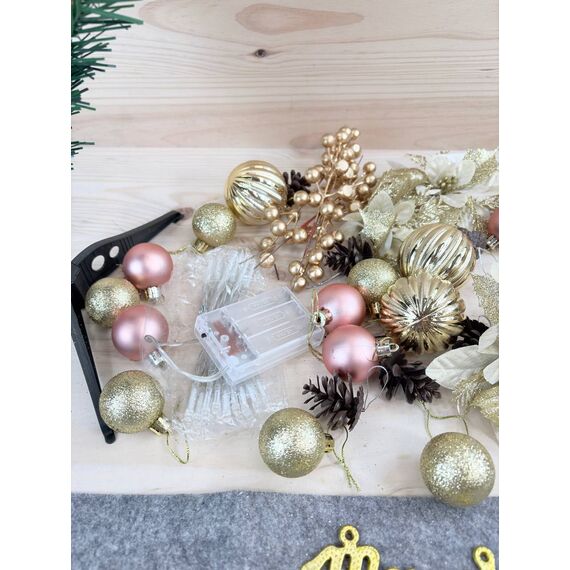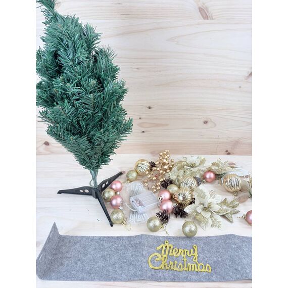 Joyhoop Mini Árbol de Navidad 60 cm (como nuevo, pequeño detalle: sin embalaje original). Este árbol de Navidad artificial de mesa incluye adornos como piñas y estrellas, ideal para dar un toque festivo a cualquier espacio.