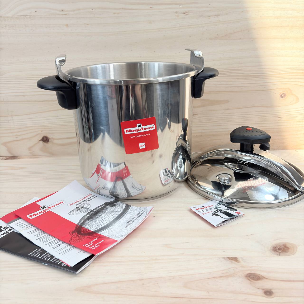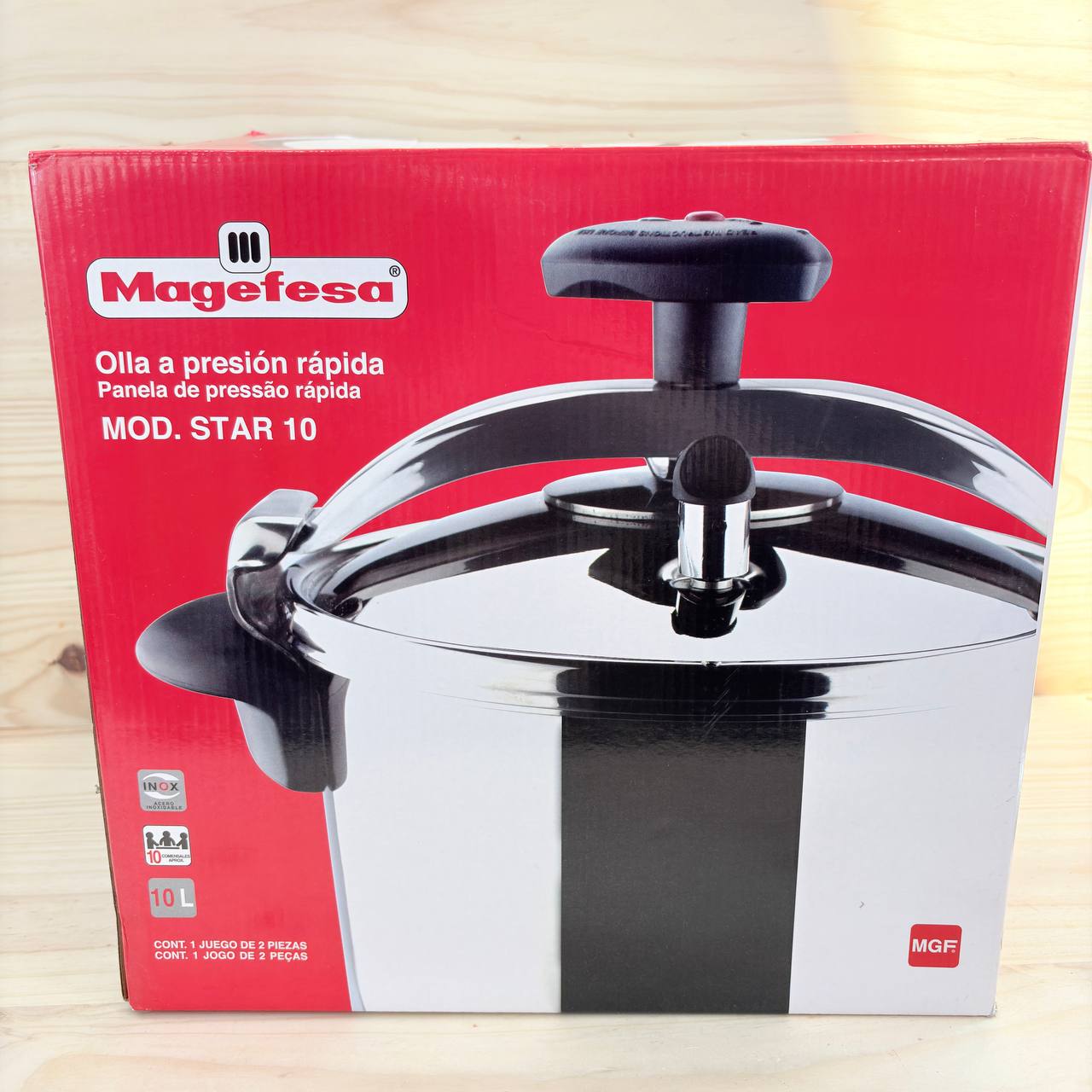 Magefesa Star Recta - Olla Express Tradicional de 10L, Acero Inoxidable 18/10, (nuevo, sin defectos). Diseñada para todo tipo de cocinas, incluyendo inducción, cuenta con 3 sistemas de seguridad.