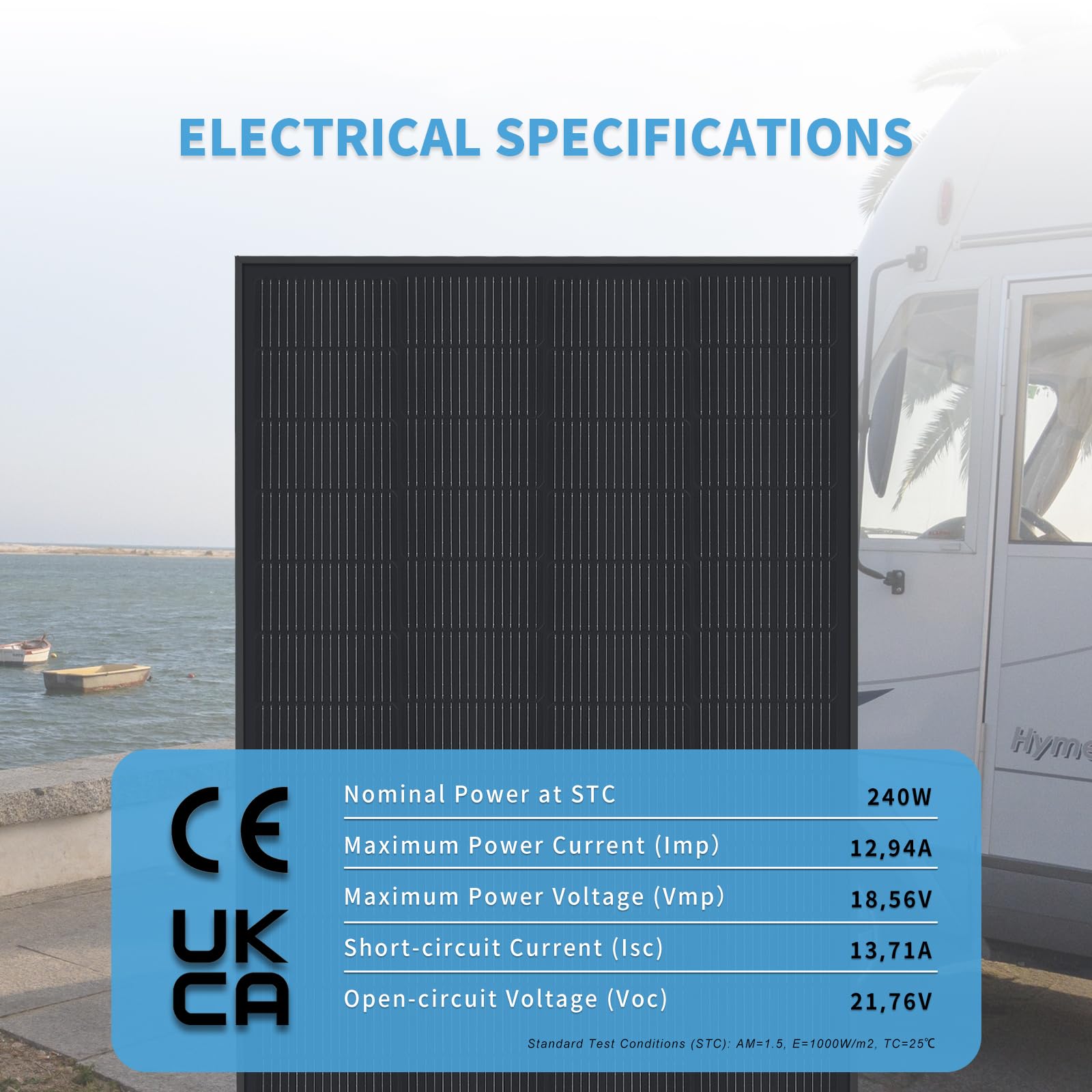 Panel Solar Monocristalino FIREFLY ENERGY 240W para RV y Barcos