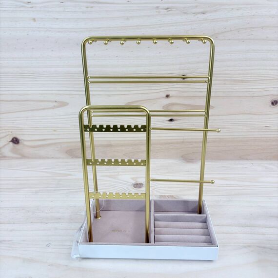 Este expositor elegante y funcional permite mantener tus joyas organizadas y a la vista, evitando enredos y facilitando el acceso diario.