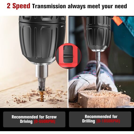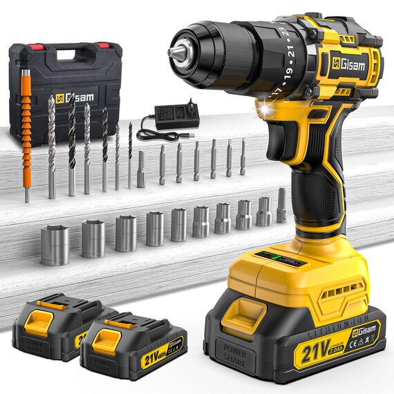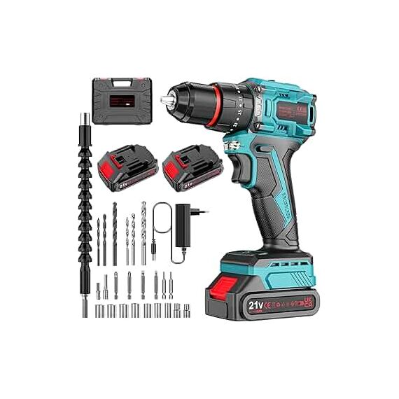Taladro Percutor Inalámbrico 21V con 2 Baterías y 24 Accesorios, 55 Nm