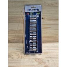 Juego de llaves de vaso Högert Technik HT1A880. Nuevas. empaque abierto. Incluye 9 llaves Torx de acero en tamaños E10 a E24. Buen estado. sin defectos visibles.