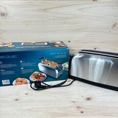 "Tostador vertical Cecotec Toastin' Time 1500 Inox. Estado como nuevo. con pequeños arañazos. Potencia de 1500W. doble ranura larga y función pop-up automático. "