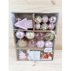 "Set de 65 bolas de Navidad Alupssuc. de 4 a 14 cm. Nuevo. nunca usado. Caja deteriorada. Bolas de plástico inastillable en acabado oro y blanco para decorar tu árbol. "