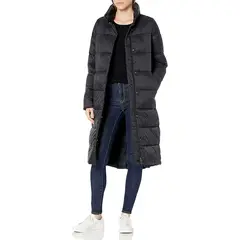 "Abrigo de invierno largo acolchado Amazon Essentials para mujer. color negro. talla M. Estado como nuevo. sin defectos. Material ligero y al agua. con cremallera completa. "