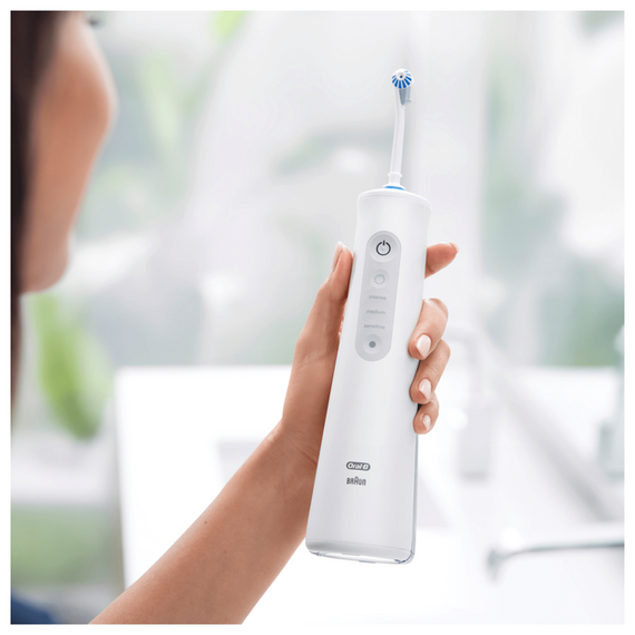 El Oral-B Aquacare Pro-Expert es un irrigador dental portátil que mejora tu limpieza diaria alcanzando zonas donde el cepillo no llega. Gracias a la tecnología Oxyjet, mezcla aire y microburbujas en el agua para eliminar eficazmente los restos de comida y la placa bacteriana.