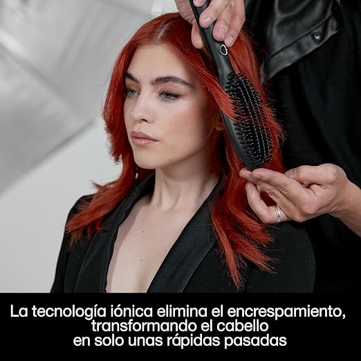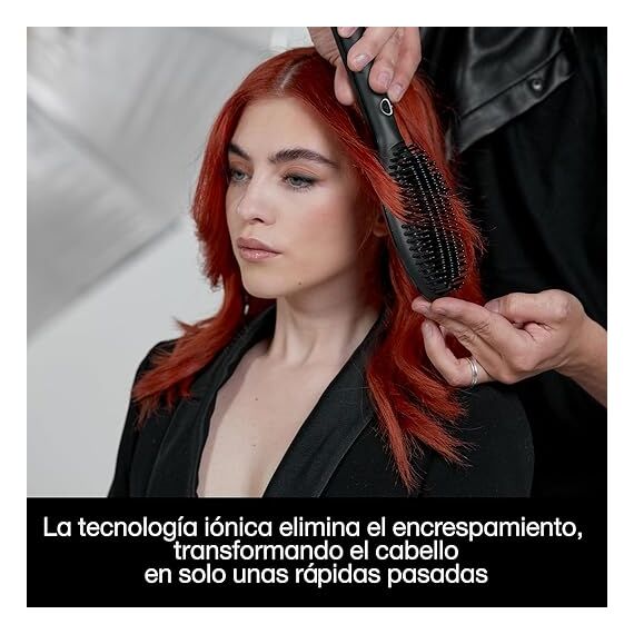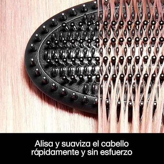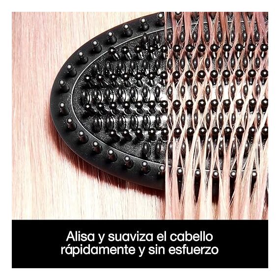 Gracias a su calentamiento uniforme a 185 °C, la temperatura óptima para proteger el cabello, consigue un acabado suave y brillante en minutos. Sus cerdas de alta densidad permiten trabajar secciones grandes de cabello, controlando el encrespamiento y manteniendo la forma natural.