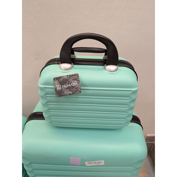 Juego de Maletas Rígidas NUMADA de 4 piezas (como nuevo, pequeño detalle: la maleta más grande tiene rotas las dos asas). Incluye maleta de cabina de 53 cm, mediana de 63 cm, grande de 75 cm y neceser. Fabricadas en ABS Eco Friendly, cuentan con 4 ruedas dobles para una movilidad óptima.