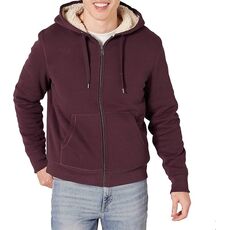 "Sudadera con capucha de forro polar para hombre. Color burdeos. talla M. Nuevo. sin defectos. Cremallera completa y forro sherpa para mayor calidez y libertad de movimiento. "