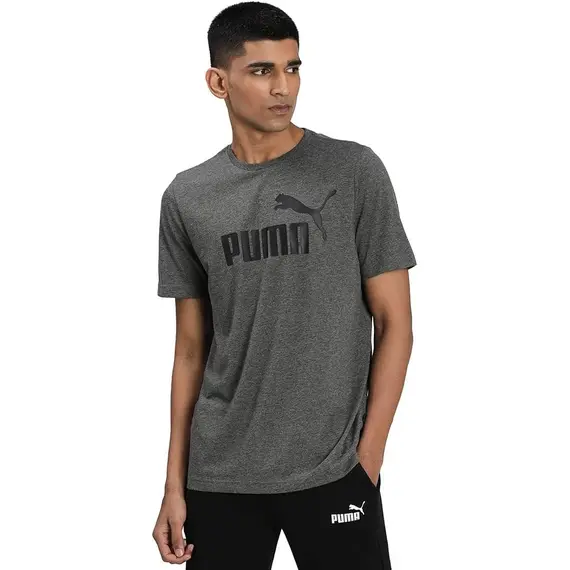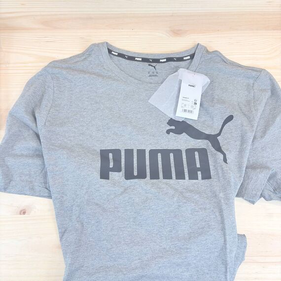 Camiseta PUMA Herren Ess Logo Tee en color Medium Gray Heather (nuevo, sin defectos). Fabricada en algodón suave, ofrece comodidad y estilo para el uso diario.