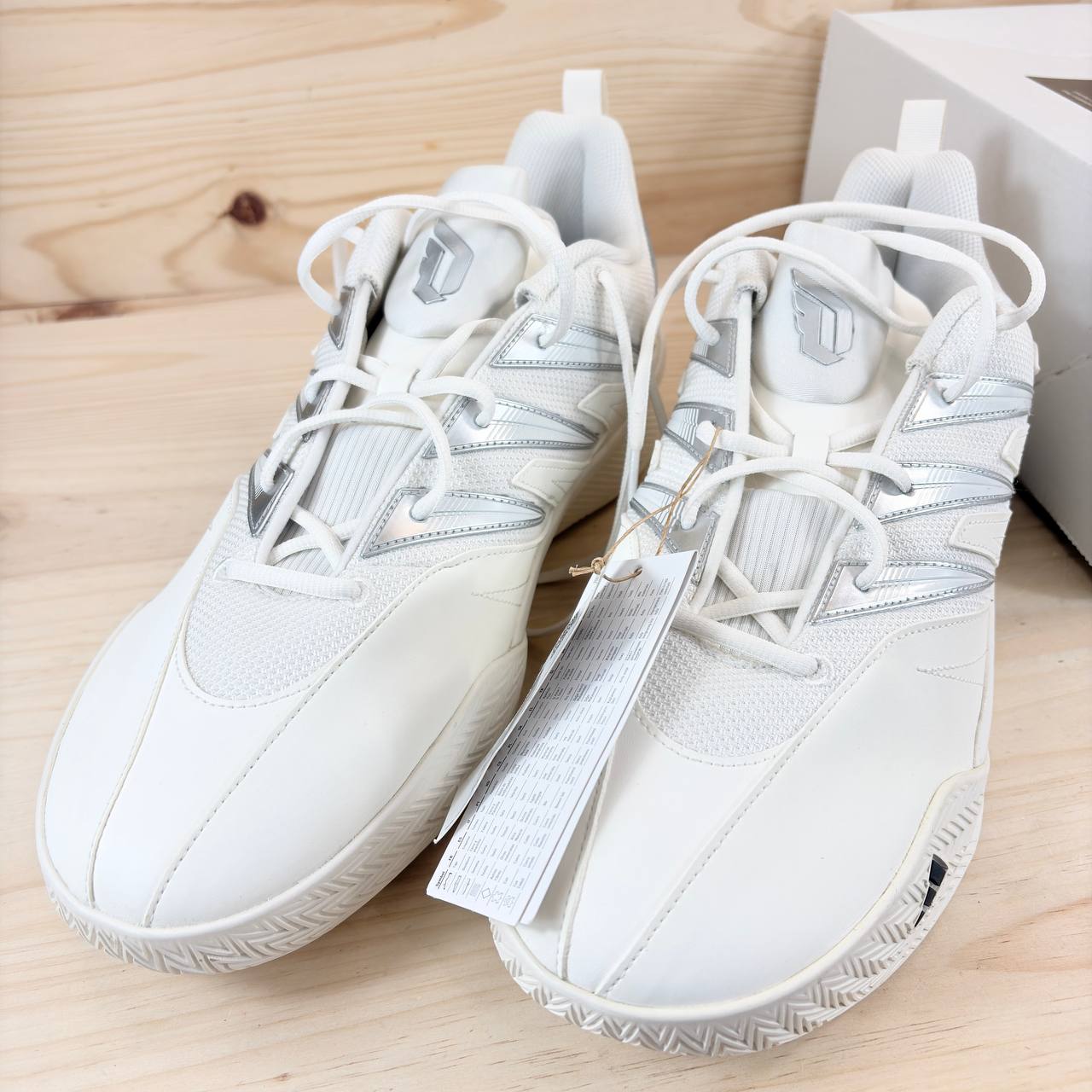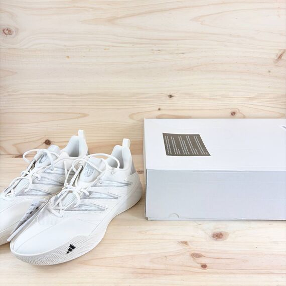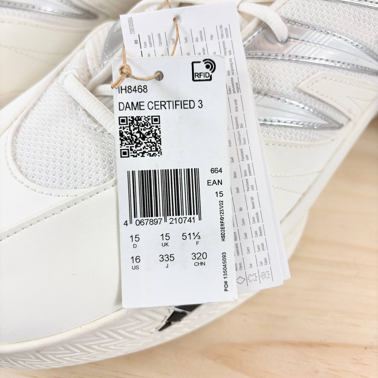 Zapatillas adidas Unisex adulto Lillard Dame Certified 2 Low, en color blanco, negro y plata (como nuevas, con ligeras marcas de uso). Talla 51 1/3 EU, diseñadas para ofrecer comodidad y soporte durante el juego.