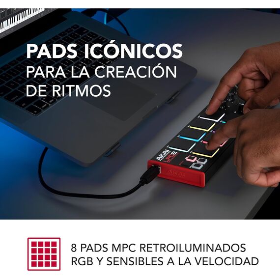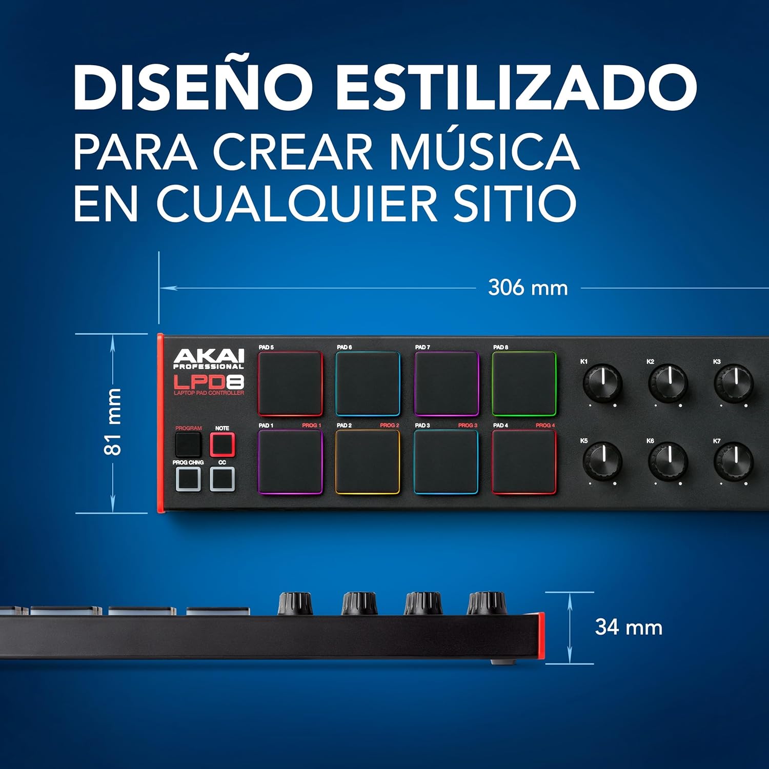 El Akai Professional LPD8 es un controlador MIDI compacto diseñado para músicos, DJs y productores que buscan portabilidad sin perder control.