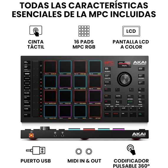 Software MPC 2.0 incluido (sampler, secuenciador, mezclador, FX e instrumentos)